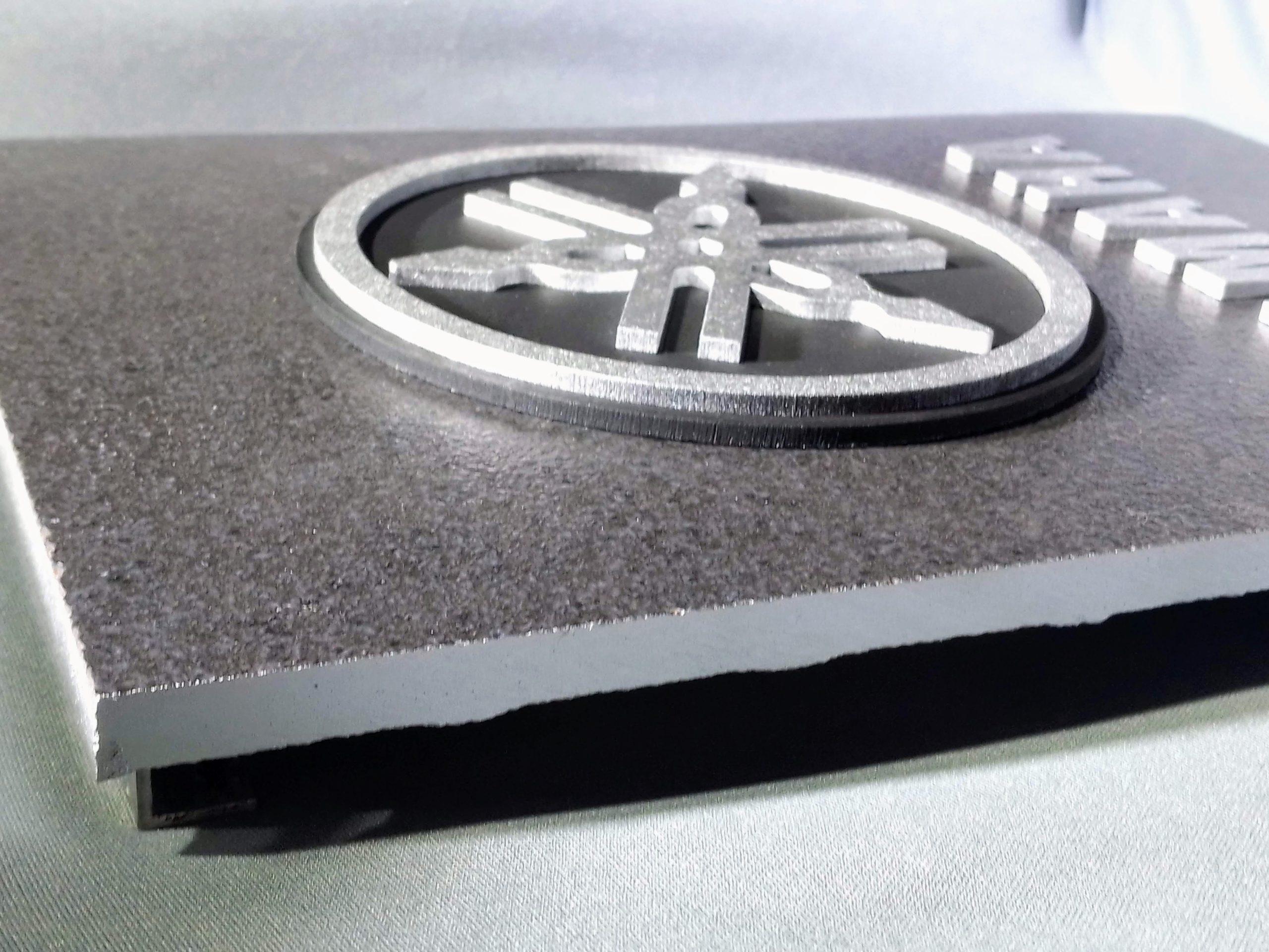 Placa Corporativa: Elegancia en Porcelanato y Alto Relieve
