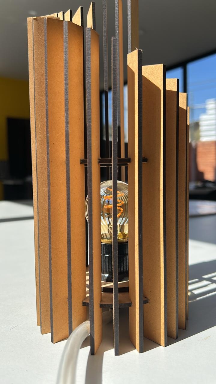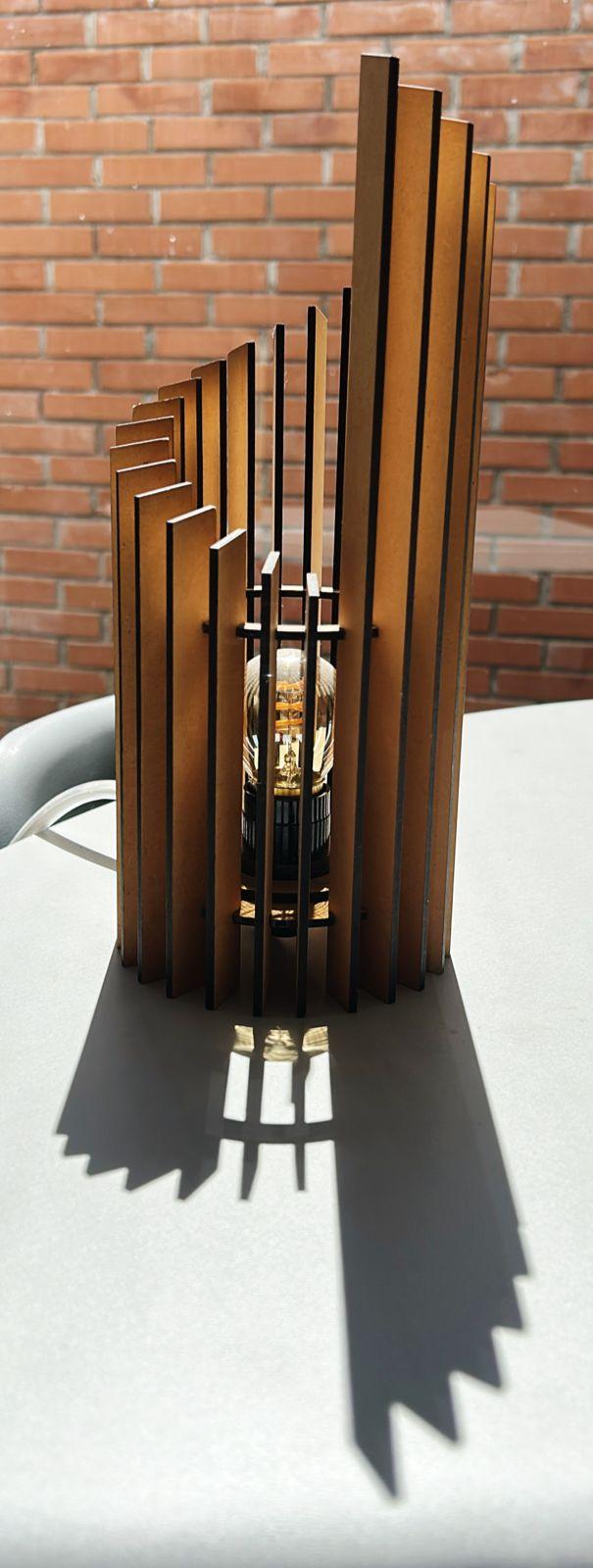 Sus secciones crecientes crean un juego visual de sombras único, ideal para acentuar repisas, escritorios o mesas de noche.